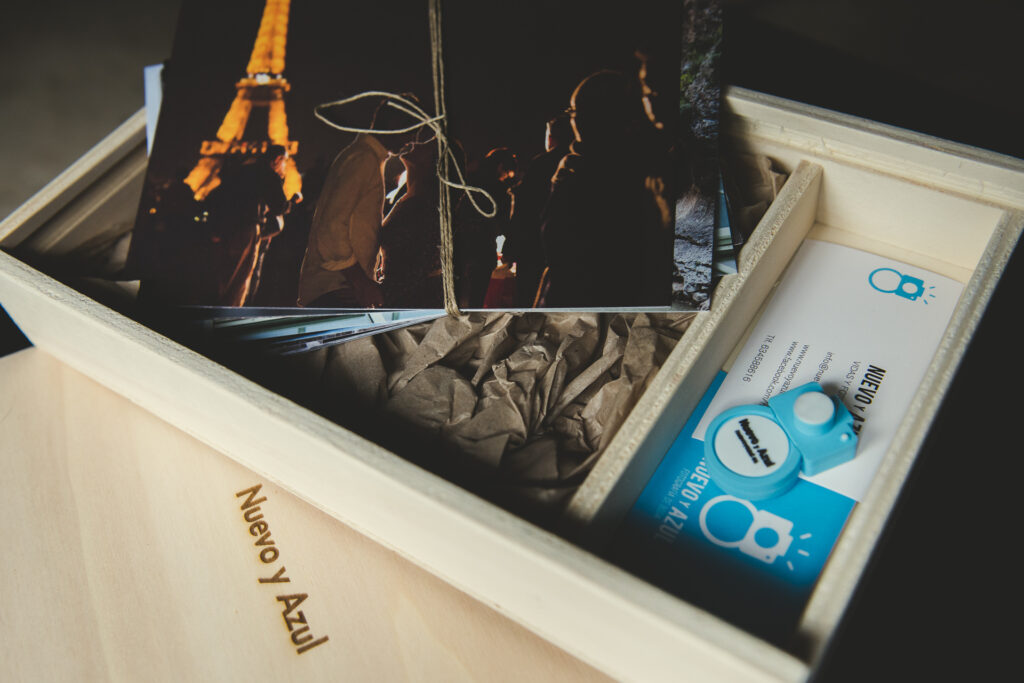 La “capsula del tiempo” que guarde tan preciado tesoro merece toda nuestra atención. Solo un dispositivo USB de memoria, exclusivo, personalizado con nuestra imagen, que respete y sea coherente con el mimo y la atención que ponemos en cada cosa hacemos es digno de albergar vuestro tesoro”, y nuestro esfuerzo, poniendo un broche final de calidad a un trabajo en el que volcamos el corazón. Una caja de madera será la encargada de cobijar, junto a 20 fotografías impresas en técnica “fine art” vuestro pendrive. Un gran continente para el mejor contenido.